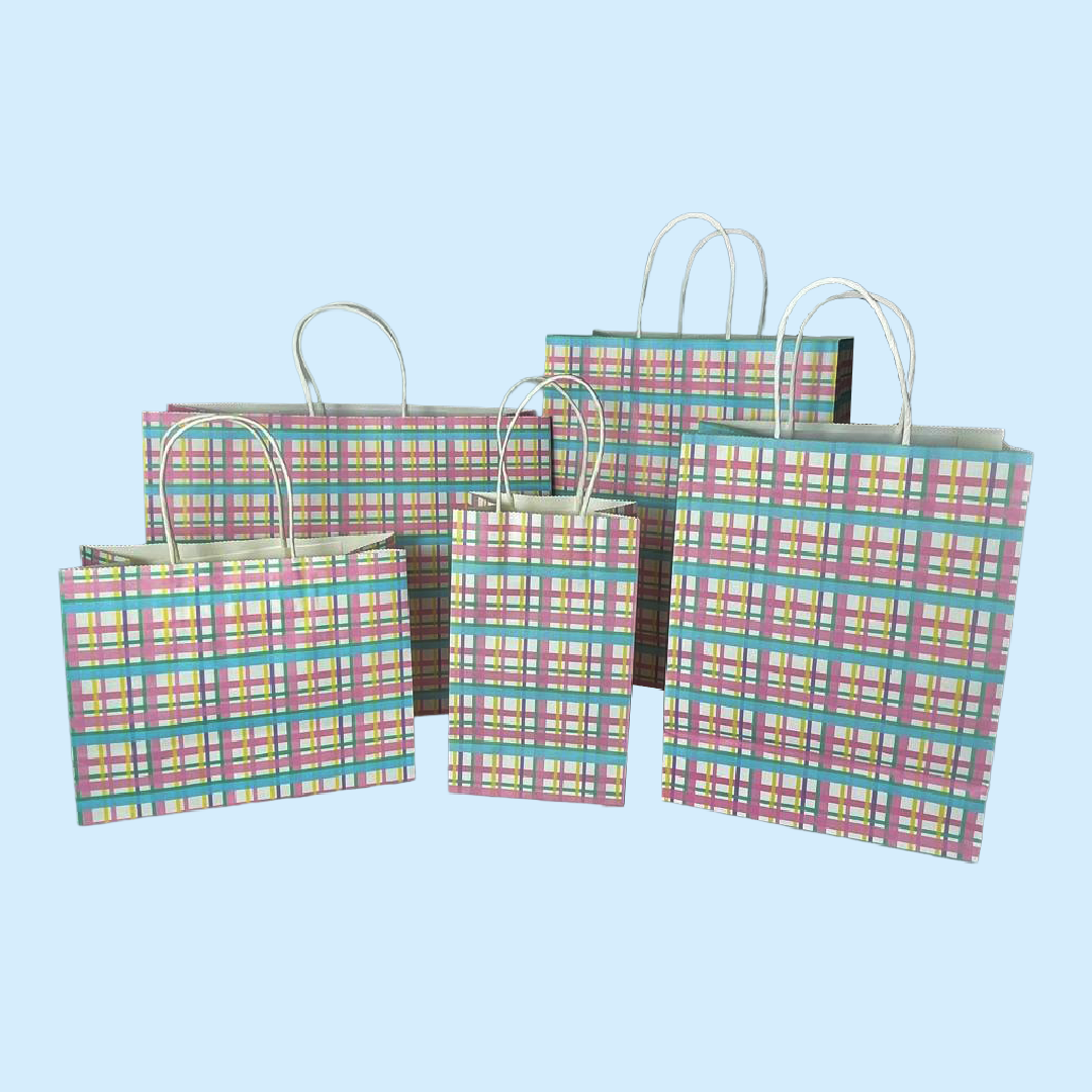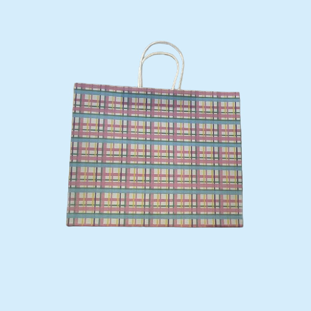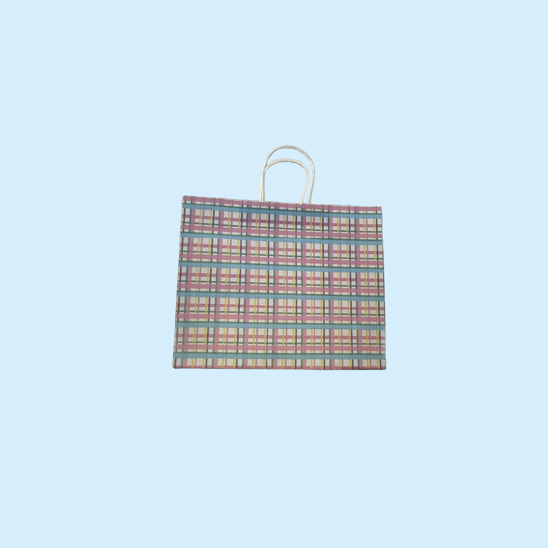 Bolsa de papel kraft blanco, resistente y práctica con un diseño impreso y asas blancas. Ideal para regalar, detalles especiales, eventos y empaques de productos.