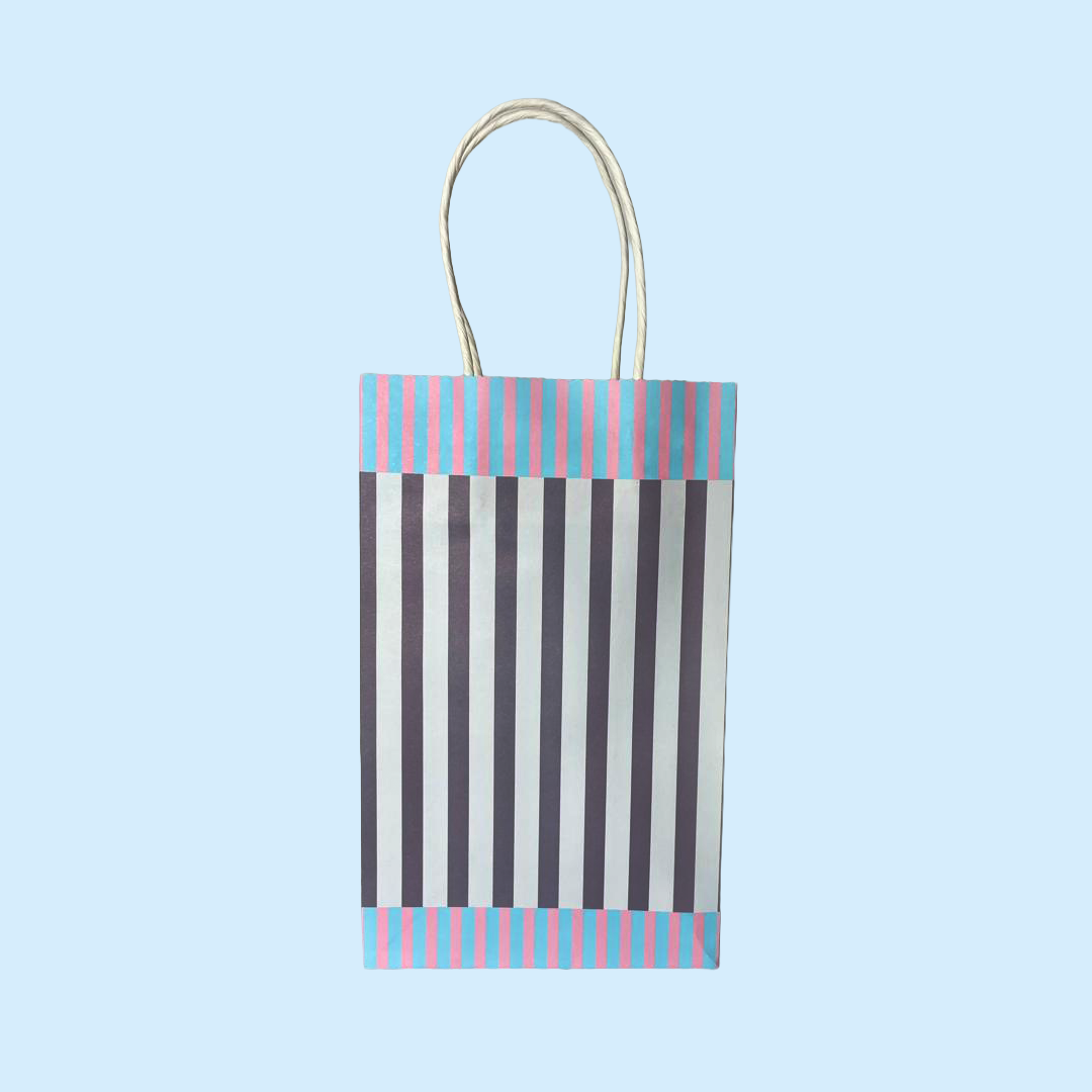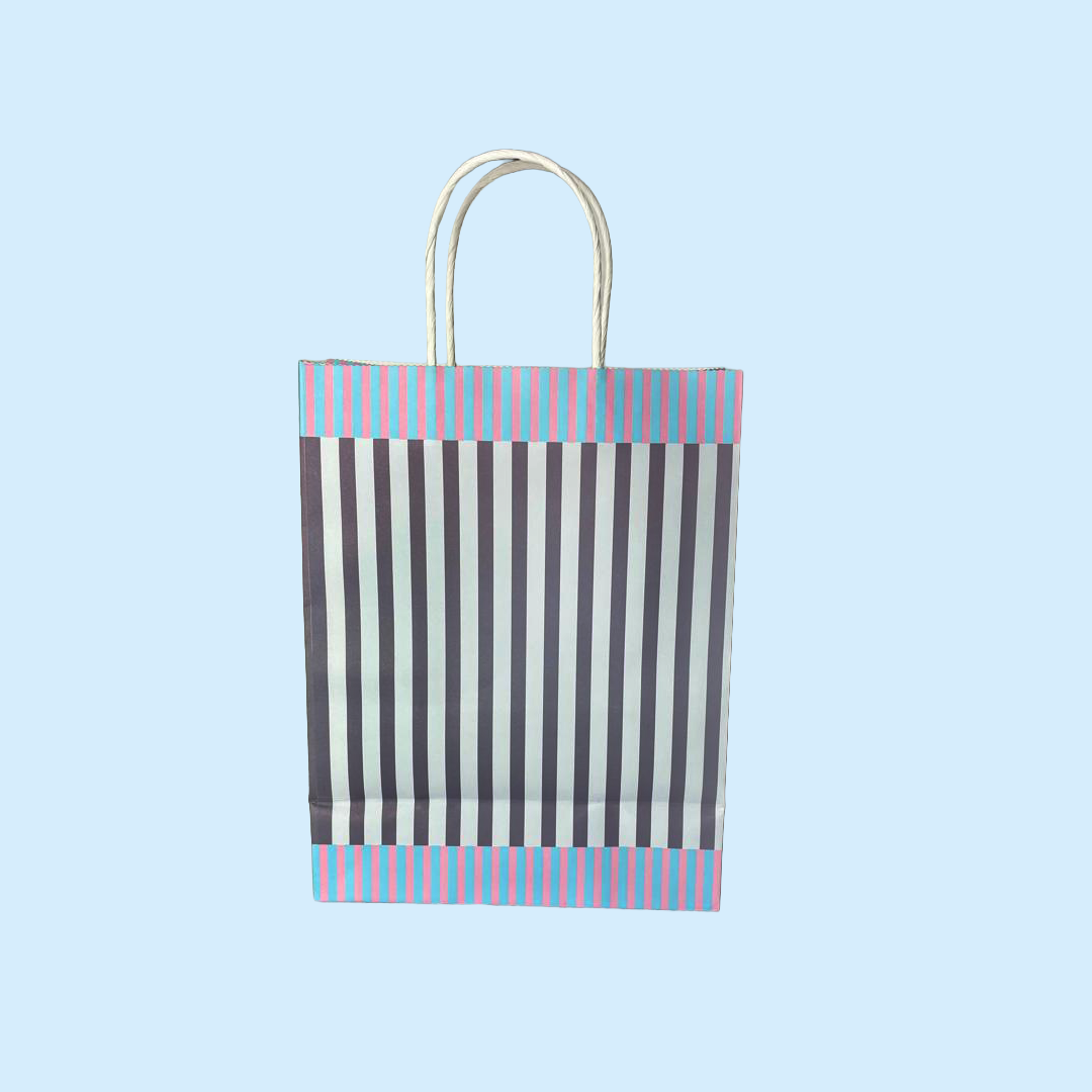 Bolsa de papel kraft blanco, resistente y práctica con un diseño impreso y asas blancas. Ideal para regalar, detalles especiales, eventos y empaques de productos.